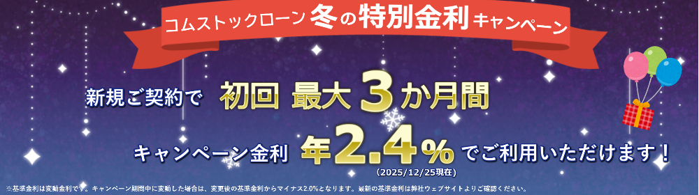 本特典により、キャンペーン金利 年2.4%(2025年12月25日現在※)でご融資を利用いただけます。
